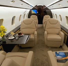 A masterful aircraft for executive travel, specifically for long-range flights. A step up from the mid-size allows more space and fuel capacity. Capacity to carry 8-10 passengers at an average cruising speed of 425-510 kts and average nonstop range of 2,900-3,100 nm.
